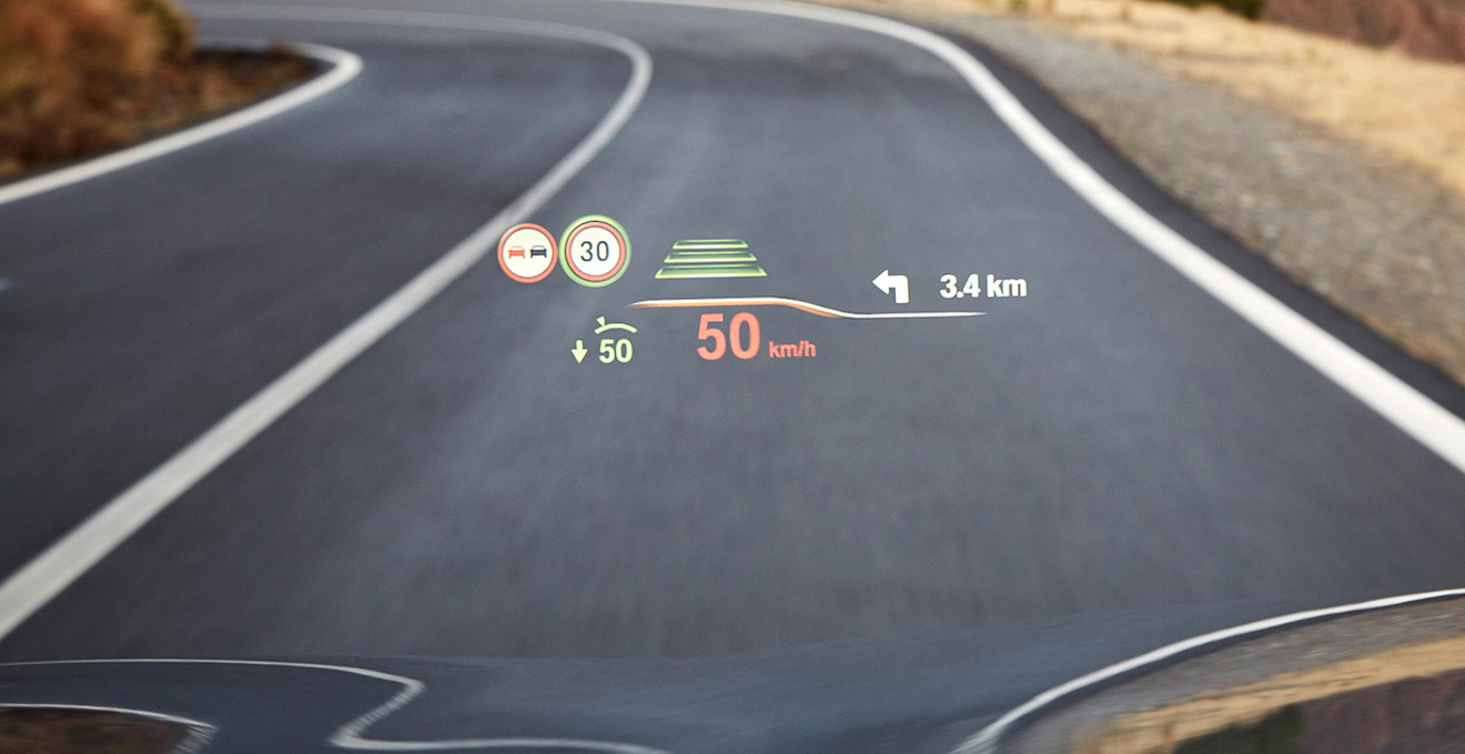 BMW Head-Up Display proyecta información relevante de conducción directamente en tu campo de visión, facilitando la concentración en la conducción. La pantalla incluye información de velocidad actual, las direcciones de navegación e información de límites de velocidad.