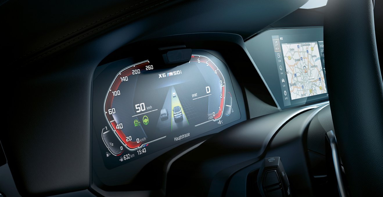 El Live Cockpit Professional incluye un grupo de instrumentos digitales de 12,3 "y una pantalla de visualización frontal que presenta navegación, indicadores de cambio, un cuentarrevoluciones y más en una configuración específica de M.